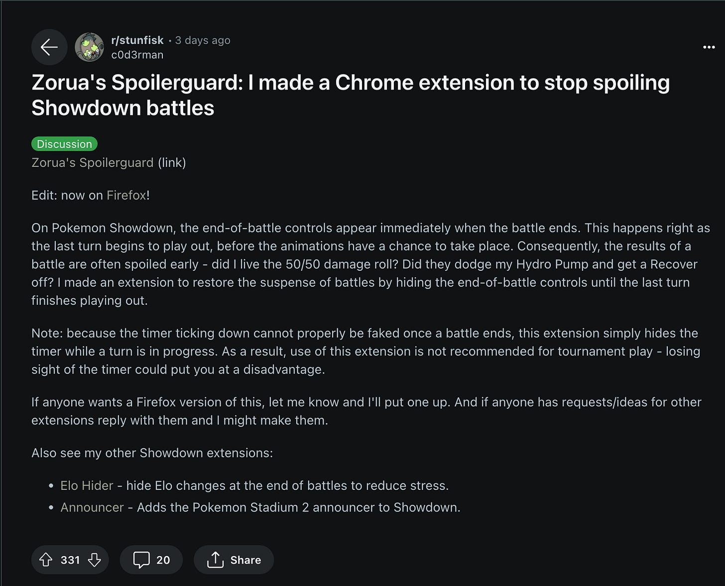 Zorua's Spoilerguard Reddit Promo Posts