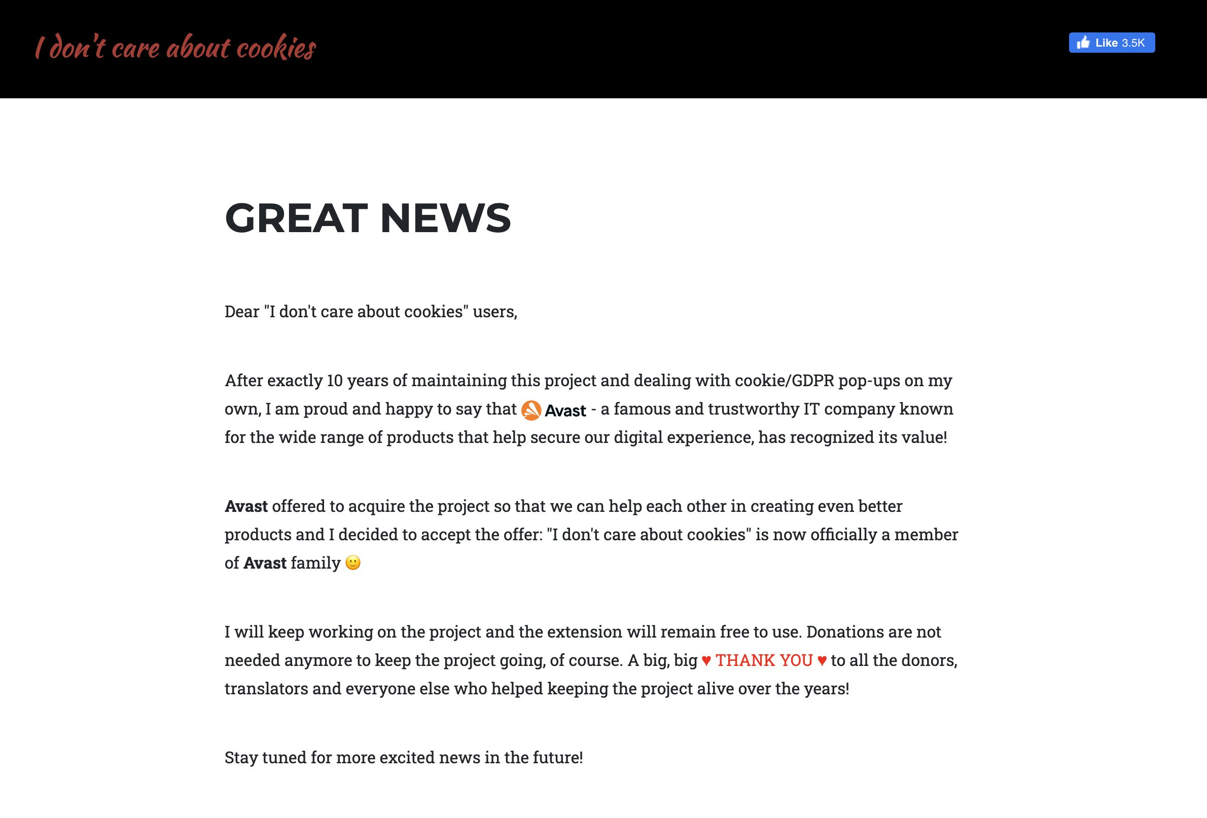 Avast acquired “I don’t care about cookies” chrome extension