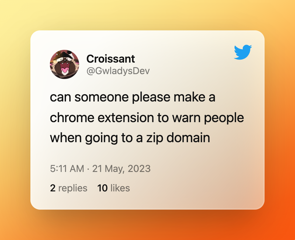 People are using zip domains to spread malicious zip files. You can read more about it here.